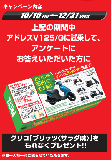 期間中、キャンペーン協賛店にてアドレスV125/Gに試乗して